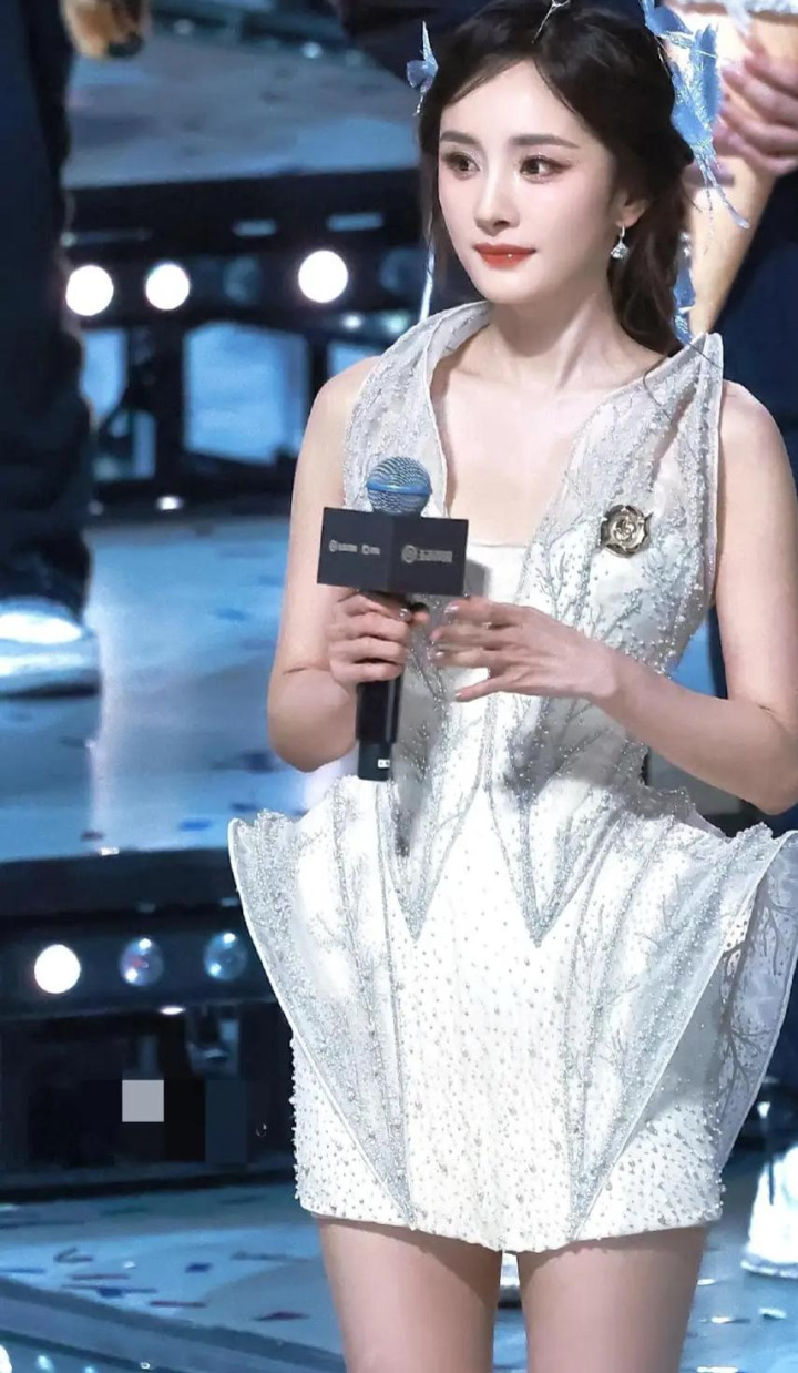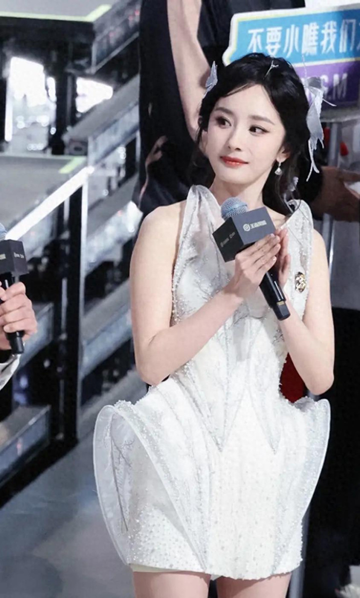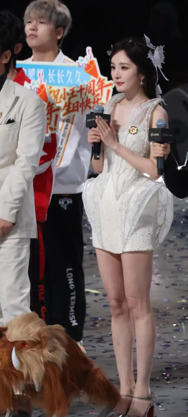 广东配资炒股 杨幂出席王者荣耀共创之夜, 白色刺绣短礼服造型灵动优雅