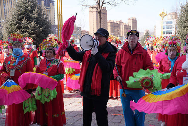 正月里的敖汉旗新惠镇,锣鼓喧天、年味正浓,一支支秧歌队走街串巷、登门贺岁。队伍之中,手持红伞、领唱领舞的孟庆华格外醒目。从正月初六开始,他便带着秧歌队穿梭于街巷商铺、企业院落,用声声秧歌送上新春祝福,所到之处欢腾热闹、喜气盈门。