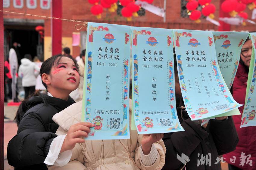 一些带有鲜明时代烙印的三线主题谜题前,不少年长的市民驻足沉思,仿佛又回到了那段激情燃烧的岁月;而另一边,“夷陵三巷(打一本地特产)”“三峡人家(打一成语)”等充满家乡韵味的本土谜题,则引得年轻人争相掏出手机,一边查资料一边讨论,现场竞猜气氛热烈。