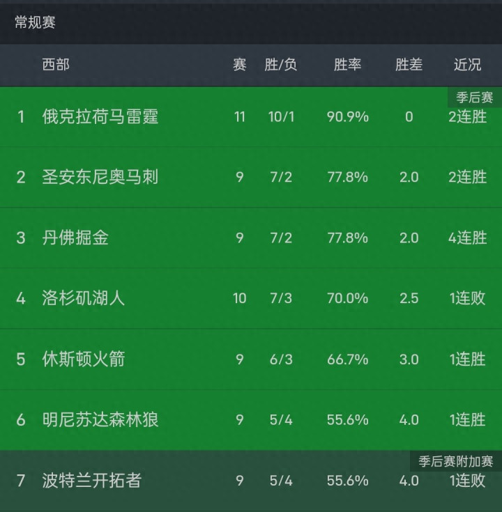 就在今天中午,随着雷霆114-100逆转战胜灰熊收获2连胜证券配资门户,火箭122-115逆转战胜雄鹿,西部最新积分榜如下:雷霆依旧以10胜1负的傲然战绩,排在了西部第一位;马刺7胜2负排在了第三位;大黑马掘金居然不知不觉杀到了前三;湖人第二掉到了第四,火箭第三掉到了第五。下面我们一起来看看这两场比赛: